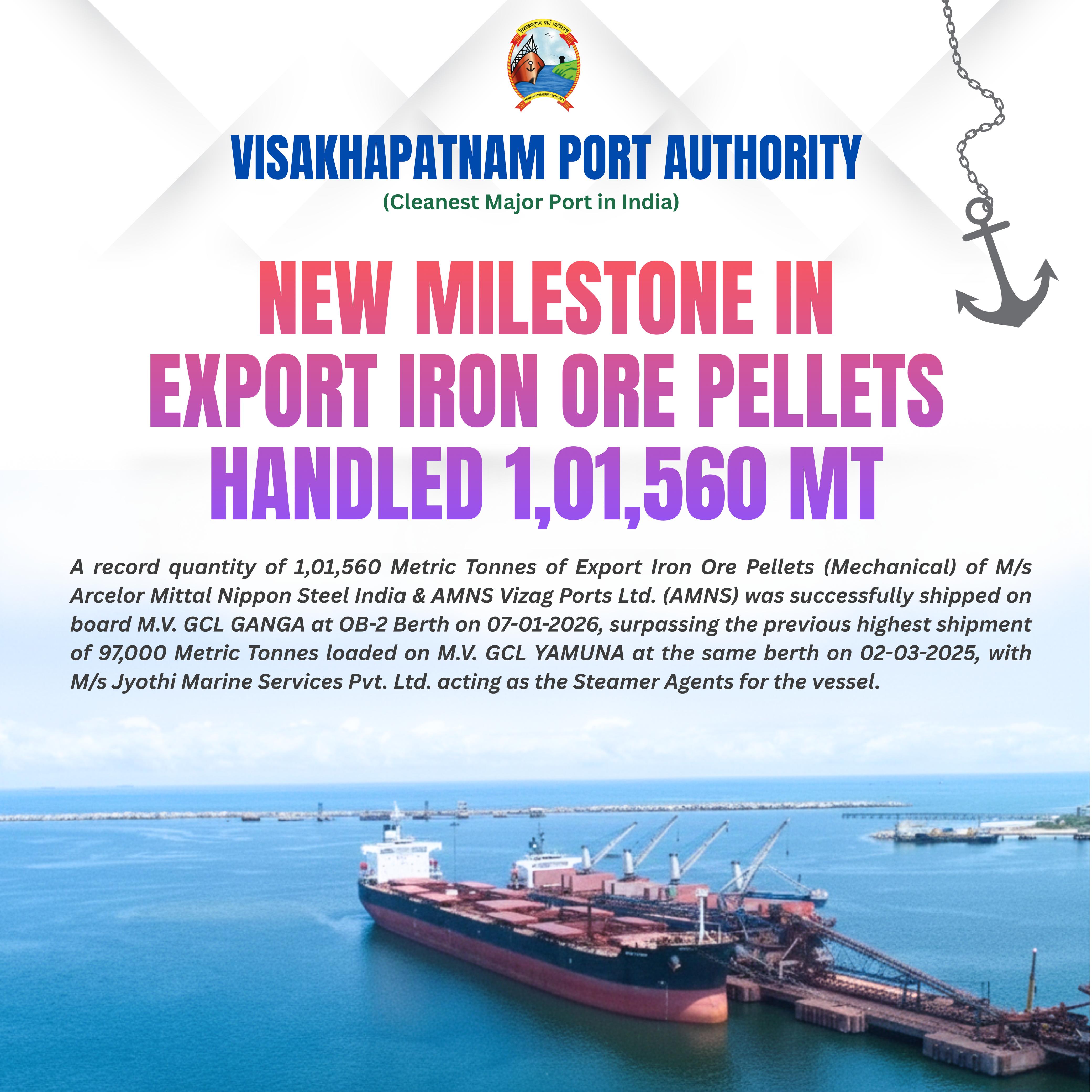 New Milestone in Export Iron Ore Pellets handled 1,01,560MT